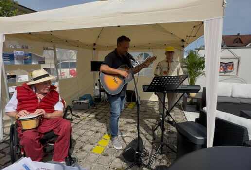 Kurze Evangelisation bei der Gemeinde XHope zum Tag der offenen Tür gegenüber der freiwilligen Feuerwehr Olching . Helmut Payer hatte das alles organisiert, Sebastian Zierer half und mit Josef Müller wurde ein Lobpreislied gesungen. Alle Ehre dem HERRN JESUS.